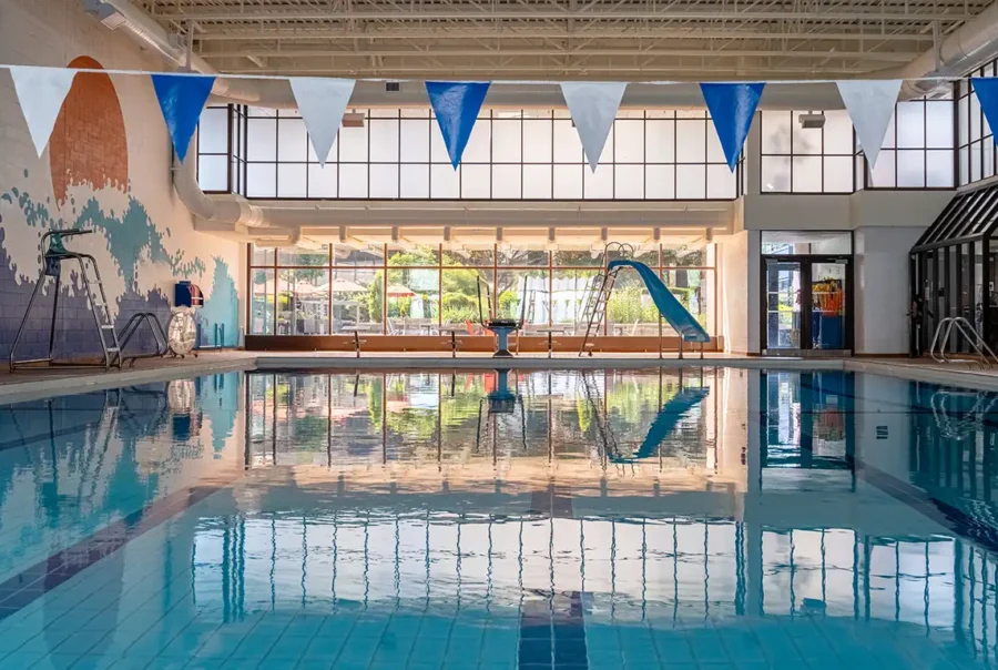 - Piscine intérieure avec glissade disponible pour location de groupe
